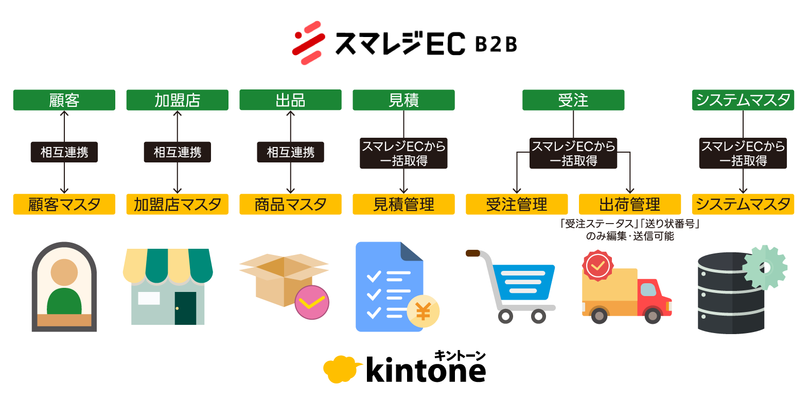 見積、受注、システムマスタ情報がスマレジEC・B2Bから一括取得が可能で、